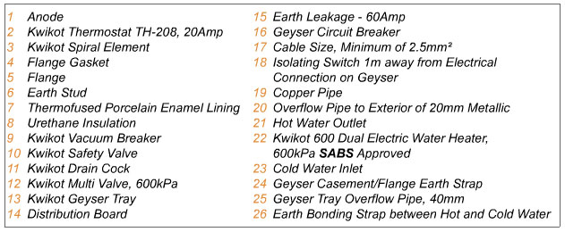 WIRES MELTED OFF ELEMENT– on some geysers this is more common than others. It may cause your electricity to trip. Wires will have to be replaced. ESTIMATED COST R550.00 ex vat.