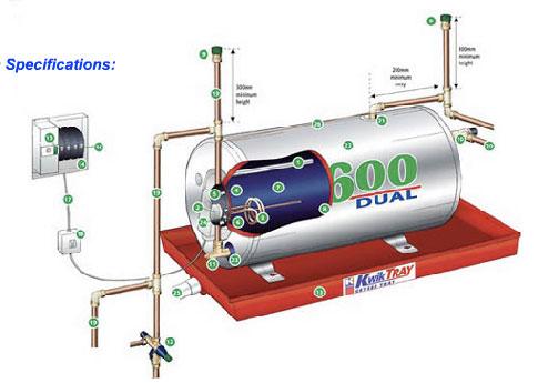HOT WATER OVERFLOW-hot water comes squirting out your overflow pipe which hopefully is led to the outside of your roof space- YES some idiots forget to put in an overflow pipe altogether and the hot water ends up on your ceilings and carpets- we promise we will do it right 1st time. This means your thermostat and temperature/pressure valve [TP valve] will need to be changed. The pipe that leads to the outside of your roof space must be steel or copper of at least 22mm diameter and installed in such a position that if it were to open up the hot water will not hurt anyone or harm any property. ESTIMATED COST-R 850.00